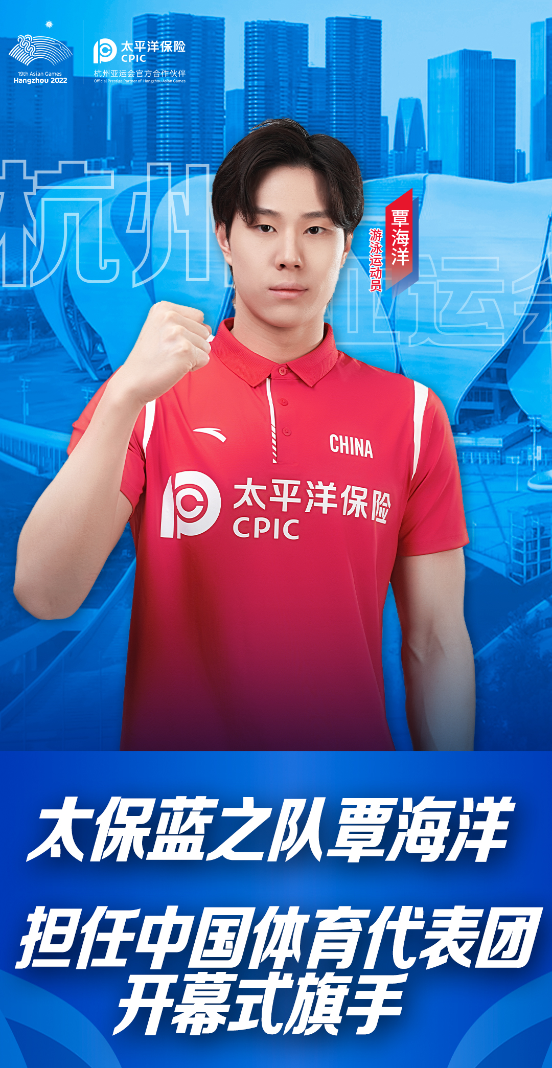 中国太保衷心祝贺“太保蓝之队”队员覃海洋,蓝色力量,实力担当。