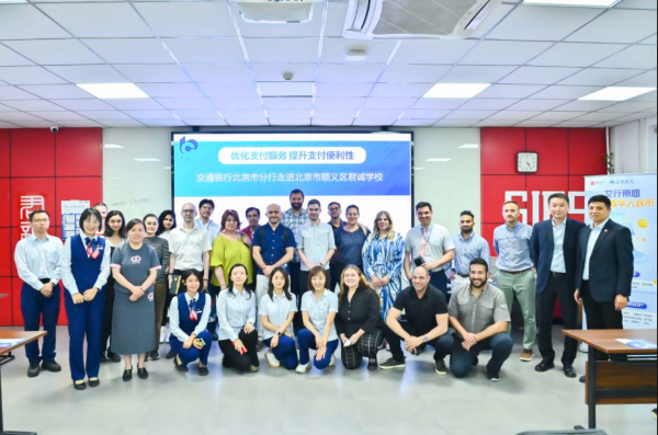 在美丽的温榆河畔,坐落着一所国际双语学校——北京市顺义区君诚学校(SIBS),近60名来自美国、英国、加拿大、西班牙、澳大利亚及新西兰等多国的外籍教师在这里工作和生活。近期,为切实提升外籍来华人员支付服务水平,使他们在中国享受更加便捷、优质、安全、高效的支付服务,交行北京市分行员工走进北京市顺义区君诚学校(SIBS),为在校外籍教师带来了一场别开生面的知识讲座。