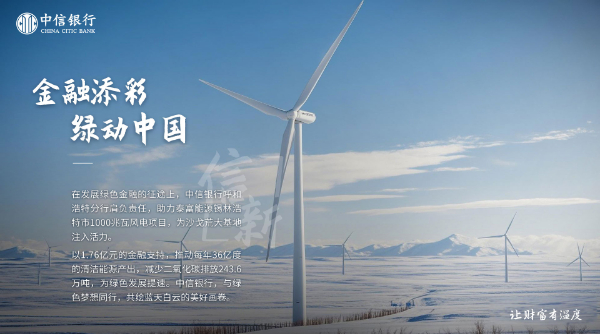 在绿色金融的征途上,中信银行呼和浩特分行肩负责任,引金融活水为沙戈荒大基地注入活力,以1.76亿元的金融支持推动每年36亿度清洁能源产出,为绿色发展提速。中信银行始终与绿色同行,共绘蓝天白云的美好画卷。