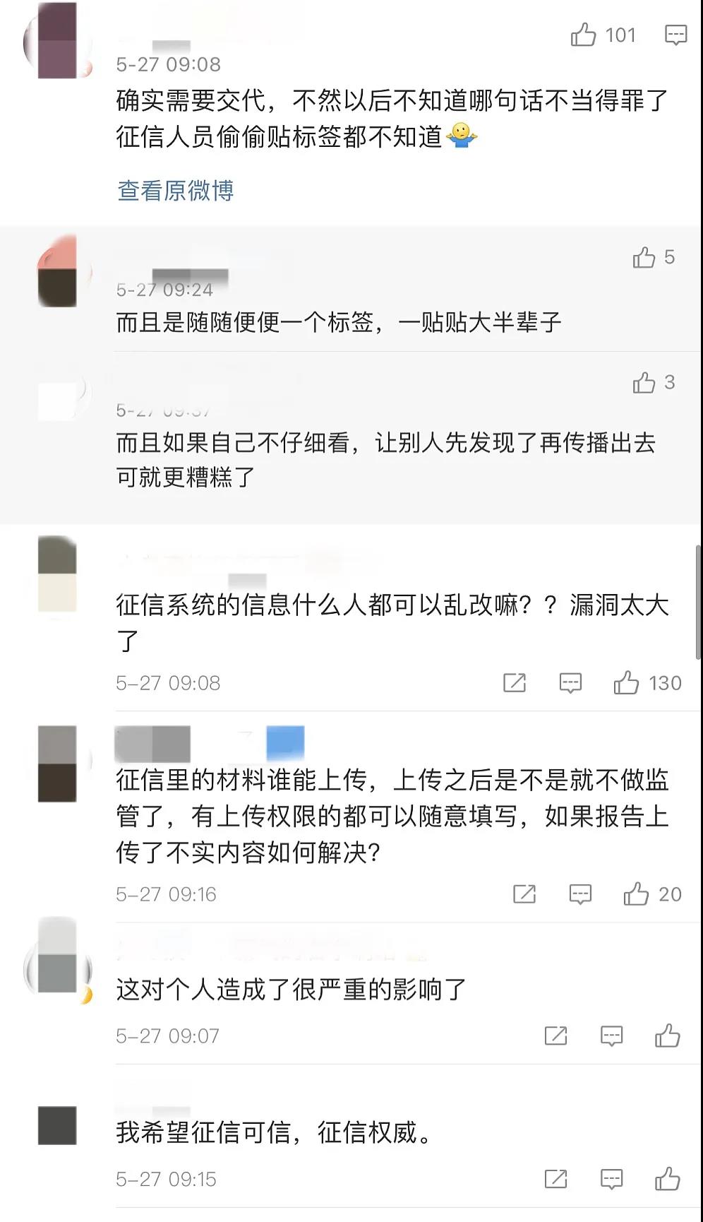 “哪个环节存在疏漏”成网民关注话题。网民说,在一系列事件的处理过程中,金融机构人员是否缺乏责任意识?征信填报、授权查询是否存在管理漏洞?征信机制需要如何完善?“一删了事”不是事件的结束,希望相关部门尽快查清、及时回应网民关切,不仅要对涉事金融机构严肃追责,也要关注事前预防机制的完善。