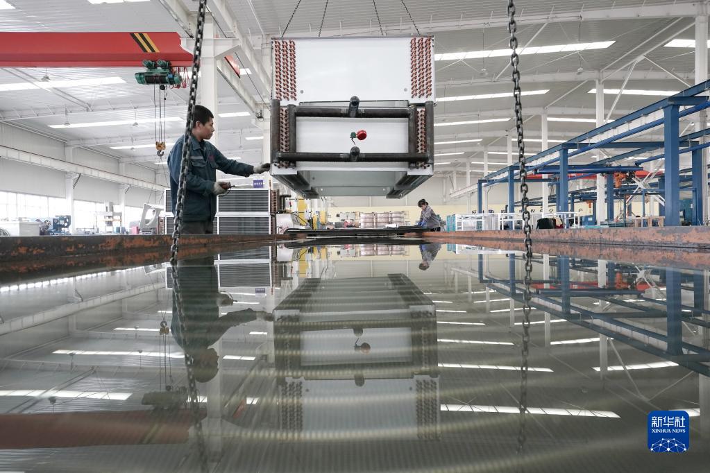 10月18日,河北省唐山汉沽管理区一制冷设备制造企业工人在生产车间工作。
