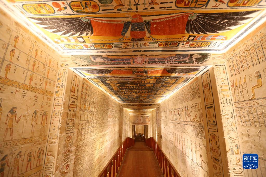 这是4月26日在埃及卢克索帝王谷拍摄的法老拉美西斯六世陵墓内的浮雕和壁画。