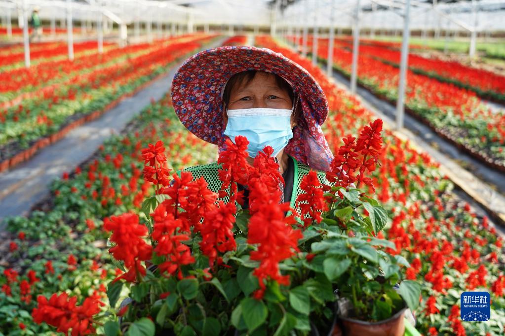 近日,江西省南昌市湾里管理局罗亭镇政通园艺草花生产基地的100余亩鲜花竞相绽放。花农们利用晴好天气,培育多种鲜花供应市场。