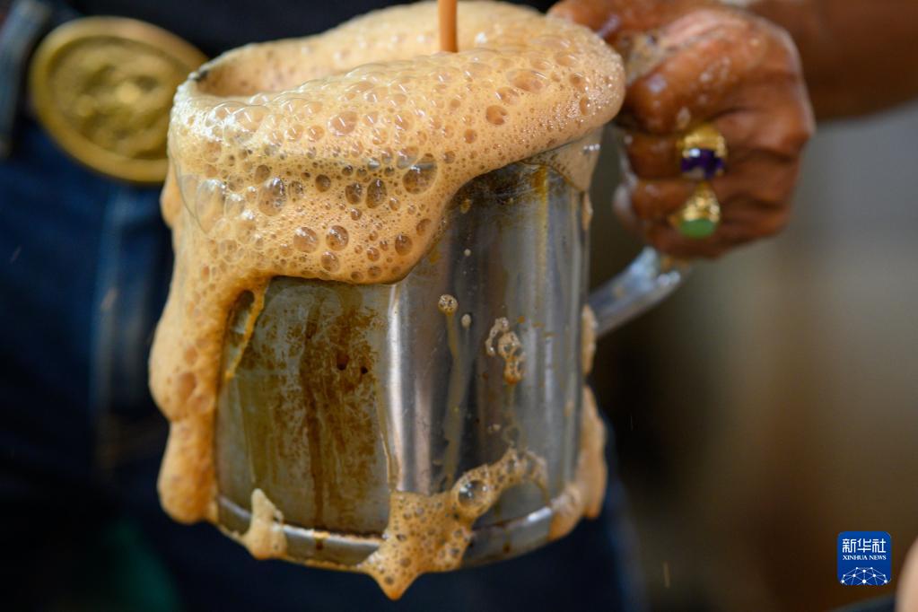 5月18日,在马来西亚雪兰莪州的必打灵查亚,穆赫德·扎布里在制作拉茶。穆赫德·扎布里在必打灵查亚经营拉茶店已超过20年,他制作的拉茶深受当地居民喜爱。