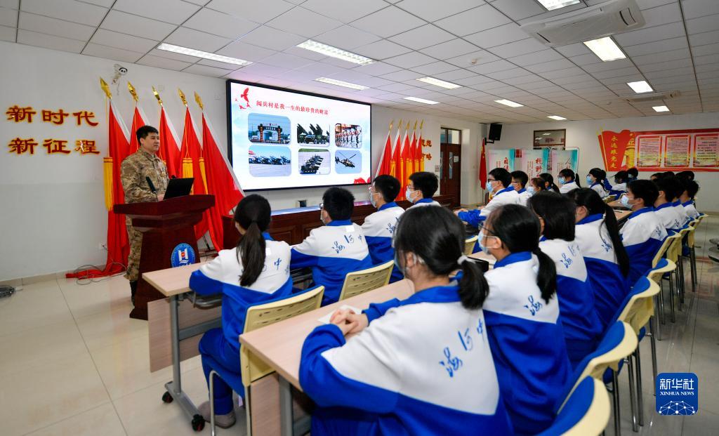 2月13日,在天津市海河中学,“全国最美退役军人”衡飞为学生讲授开学第一课。