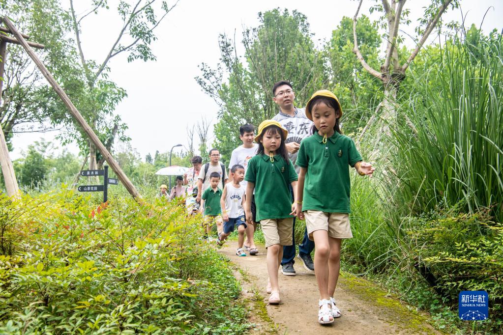 7月3日,家长和孩子们在广阳岛的“生态研学课程”上现场感受广阳岛的生态文化。