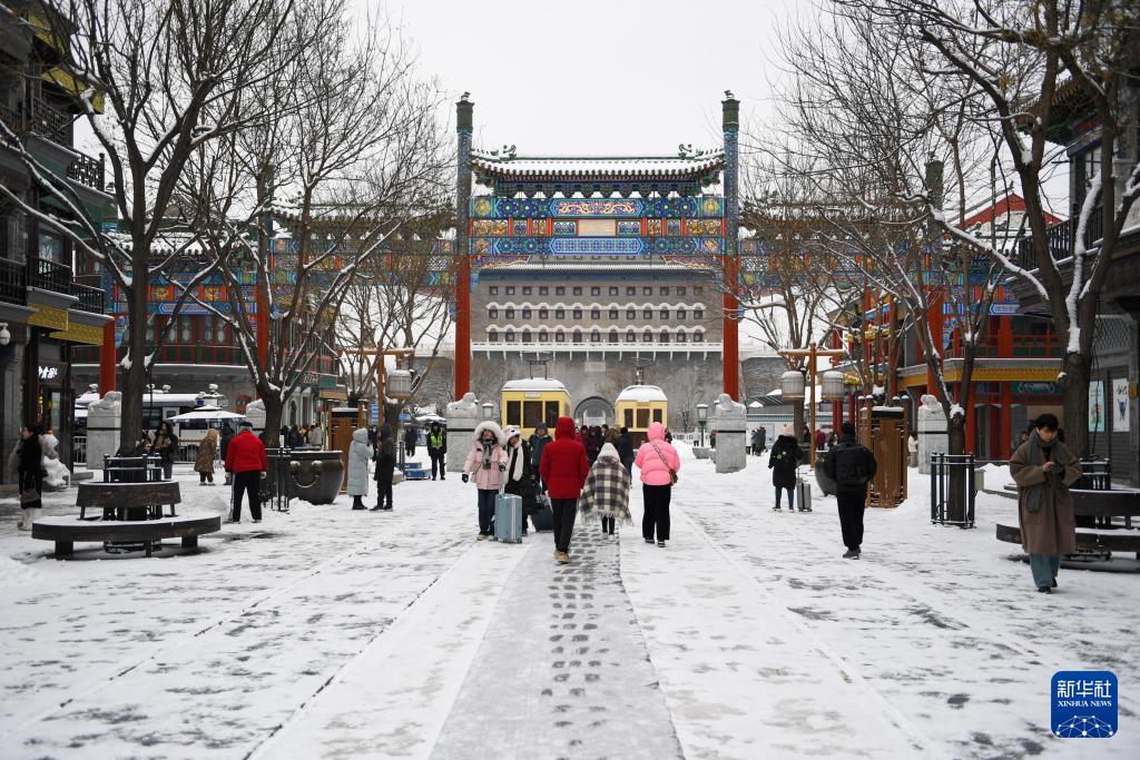 “一夜银装裹,雪落满京城。”皑皑白雪映衬下,北京中轴线上古老的文物建筑古朴宁静,韵味独特。