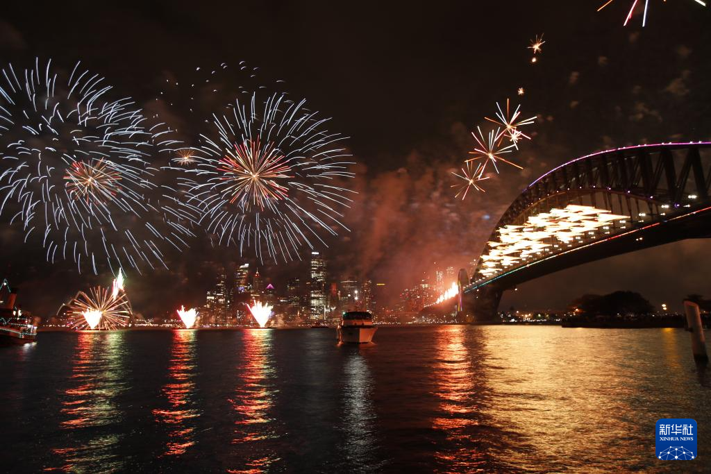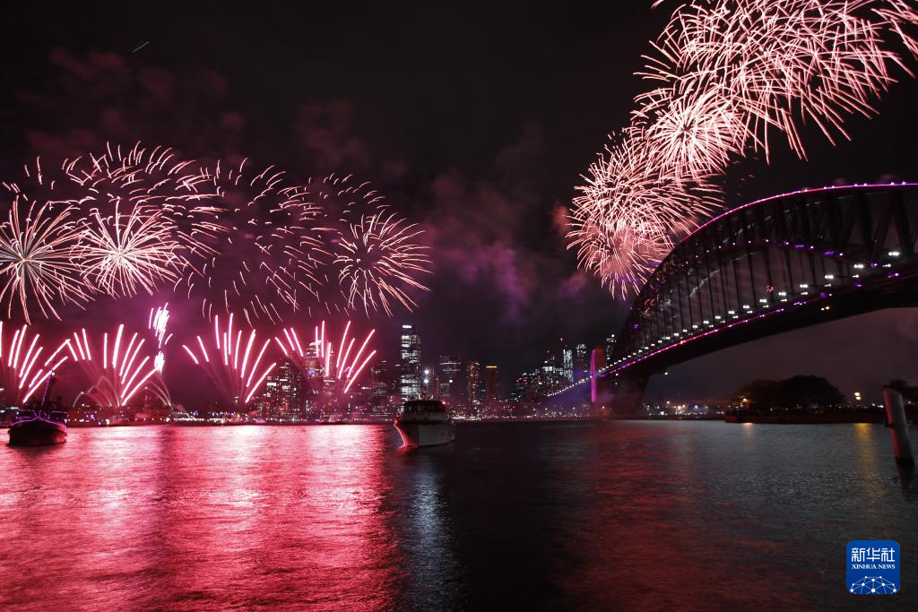 2024年1月1日,澳大利亚悉尼燃放烟花迎接新年。