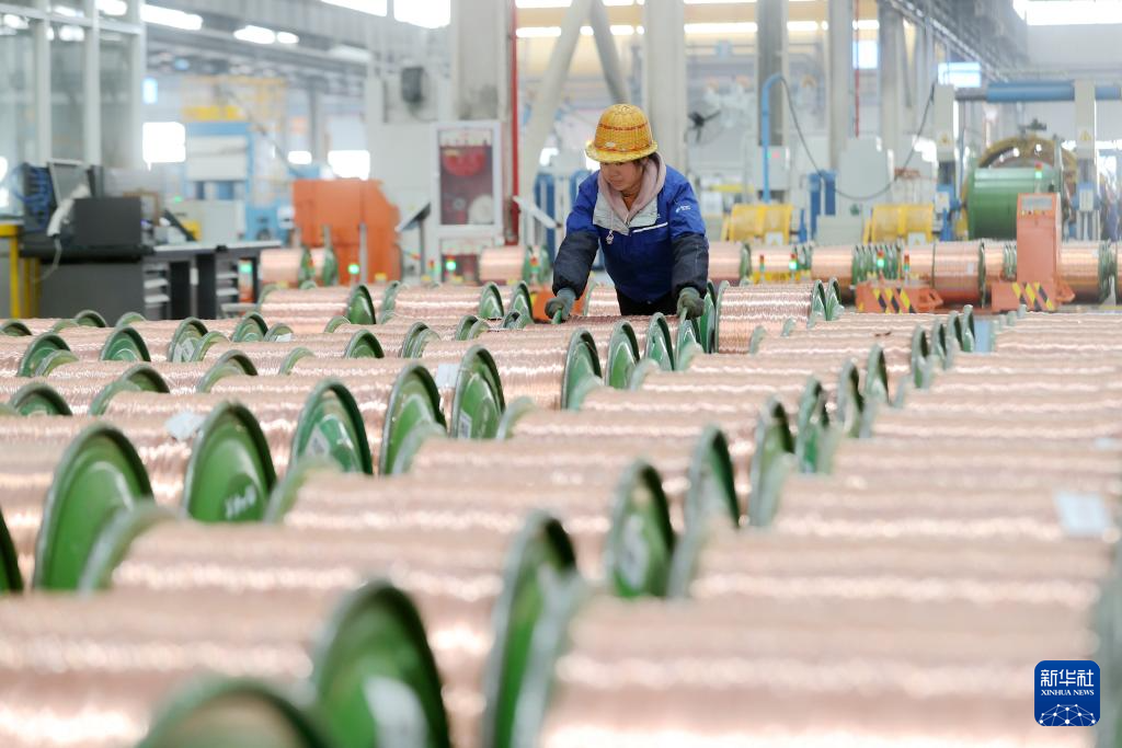 1月4日,在浙江省湖州市德清县乾元镇的浙江物产中大线缆有限公司生产车间,工人在赶制特种线缆订单产品。