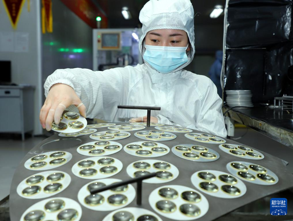 1月4日,在河南省南阳市中关村科技产业园一家光电公司生产车间,工人在进行镀膜检验。