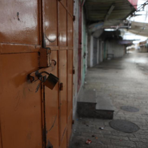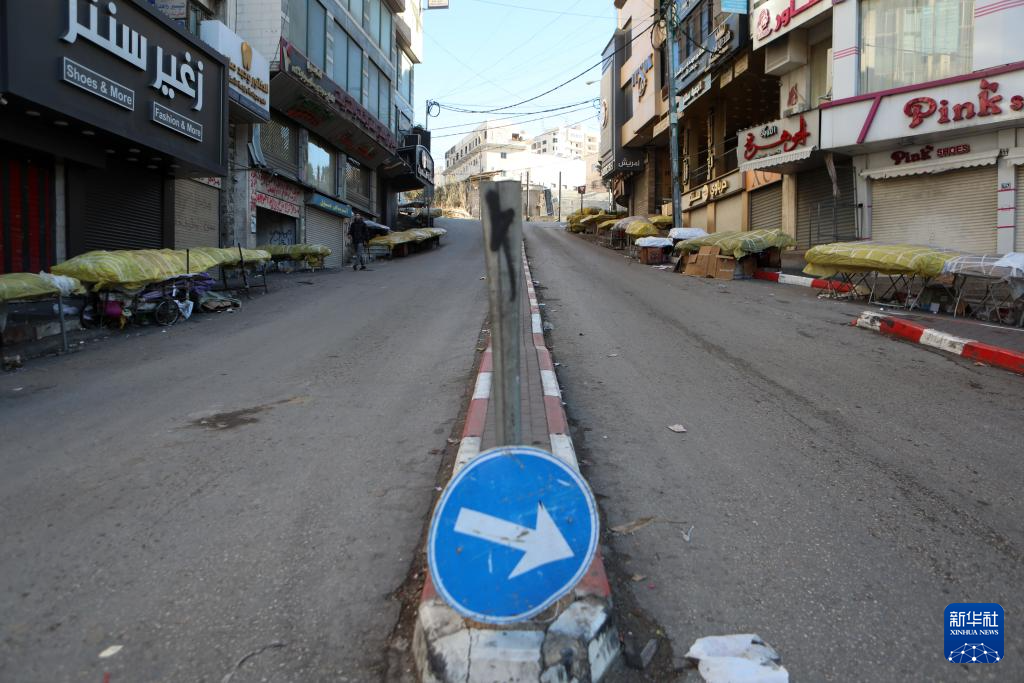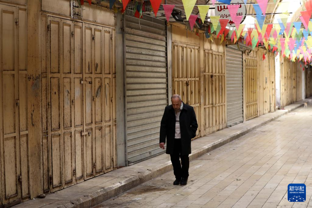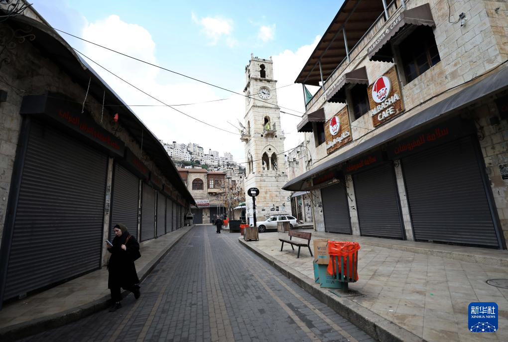 1月3日,在约旦河西岸城市纳布卢斯,行人经过关门的店铺。