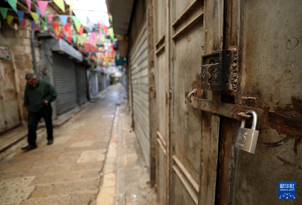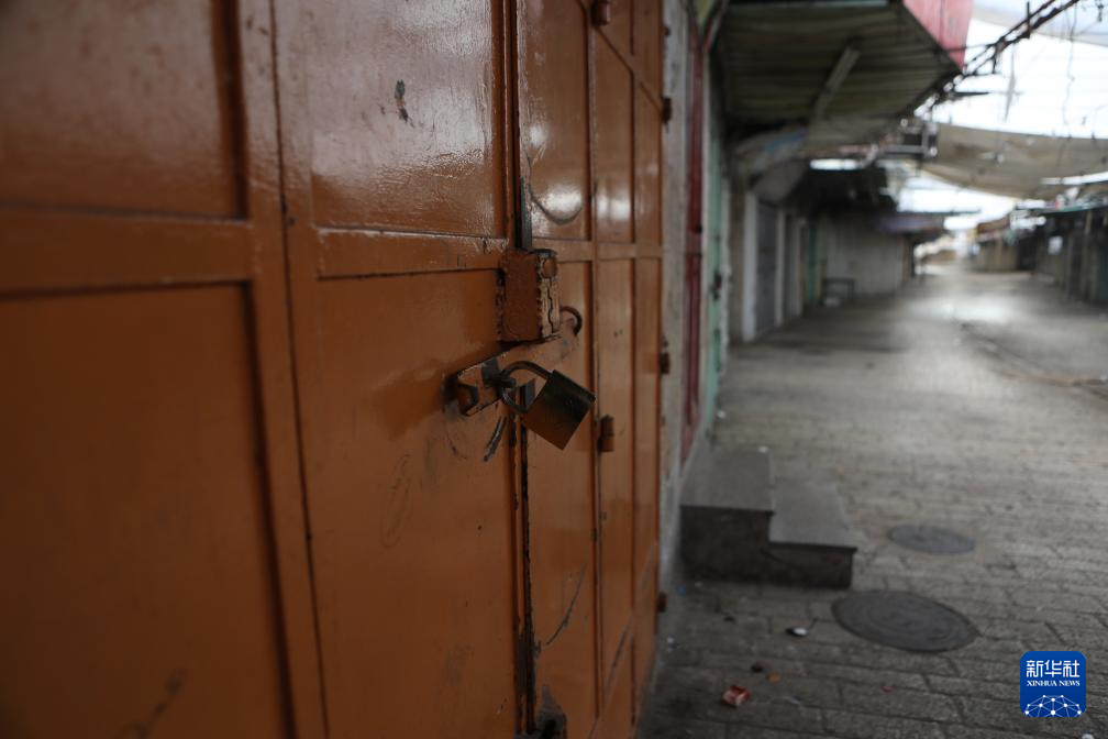 这是1月3日在约旦河西岸城市希伯伦拍摄的关门的店铺。