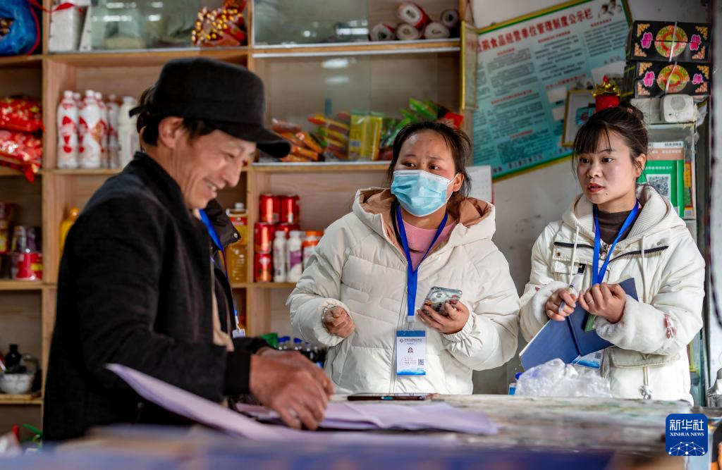 1月4日,普查员在贵州省毕节市百里杜鹃管理区在拱社区进行入户现场登记。