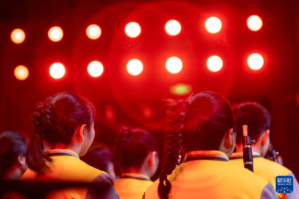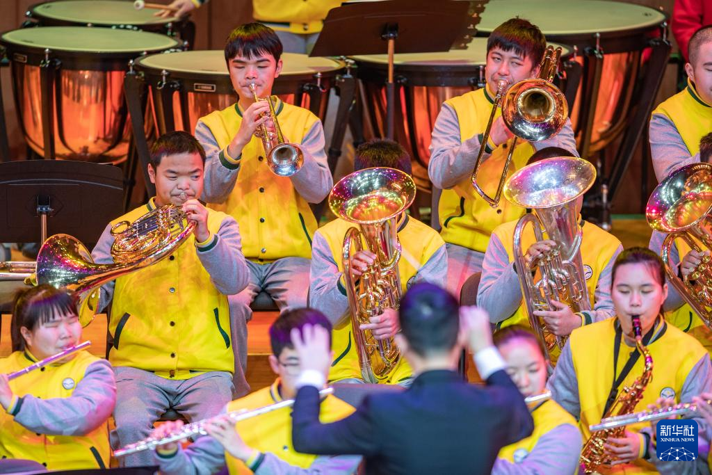 1月6日,在重庆市特殊教育中心的扬帆音乐厅,扬帆管乐团成员在新年音乐会上演出。