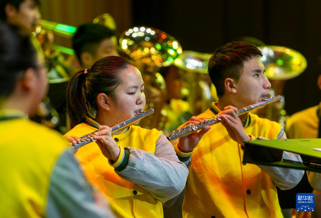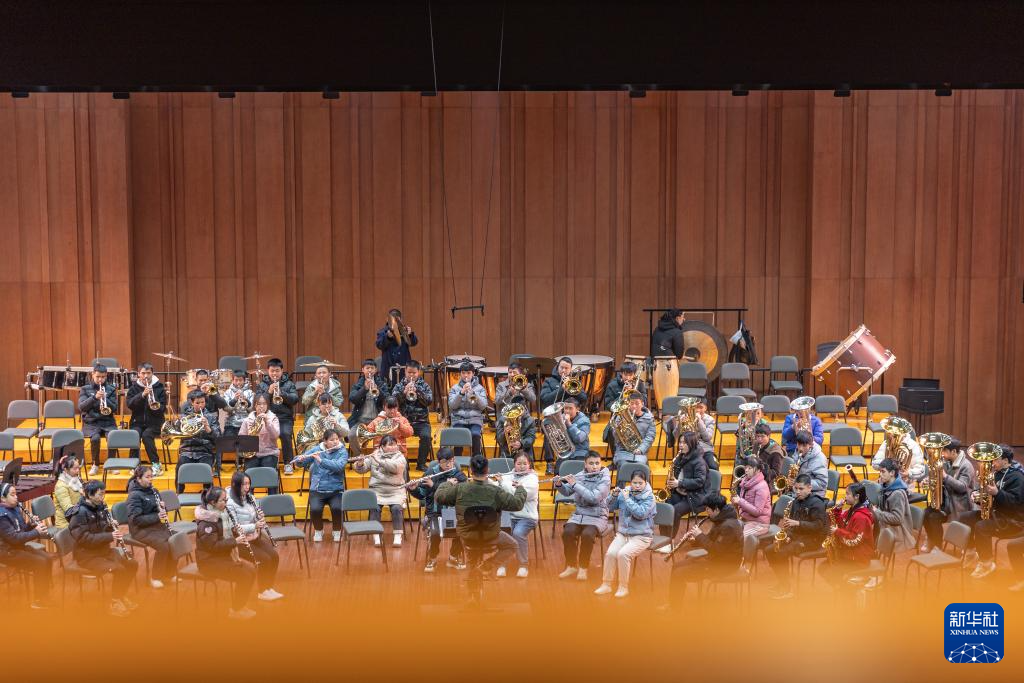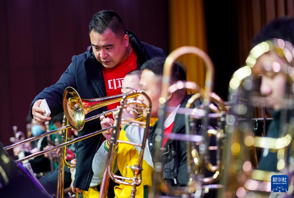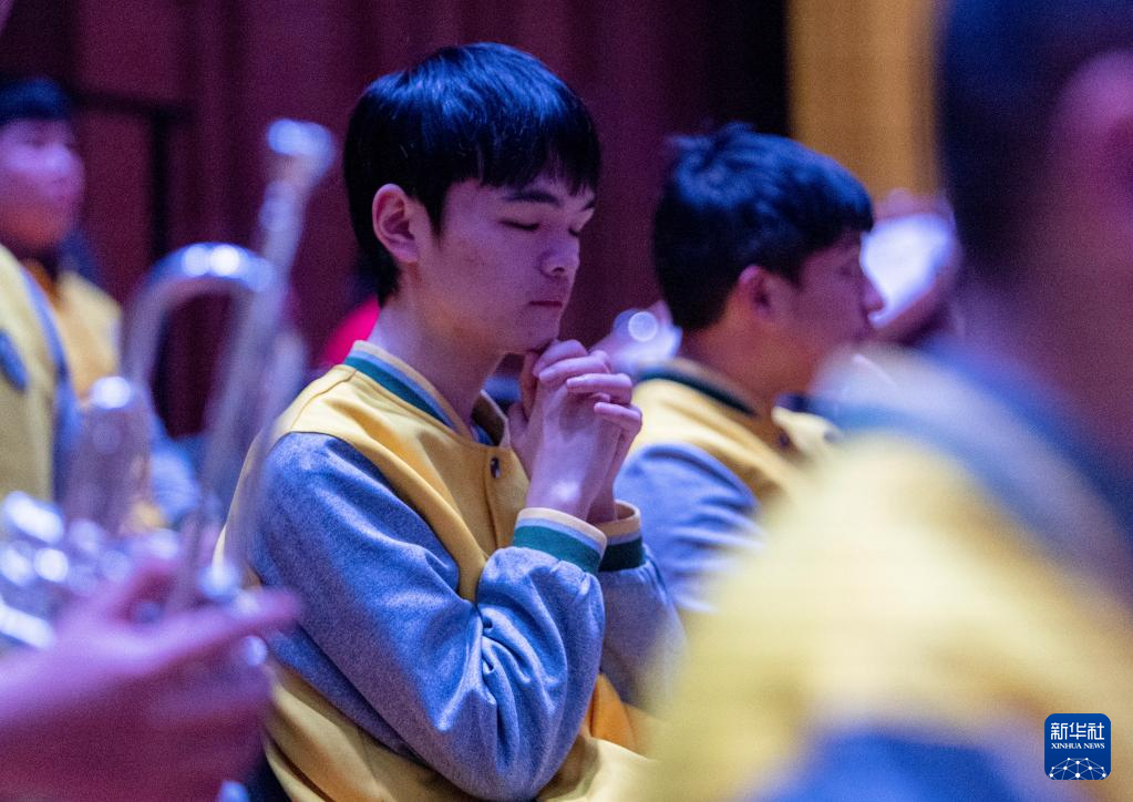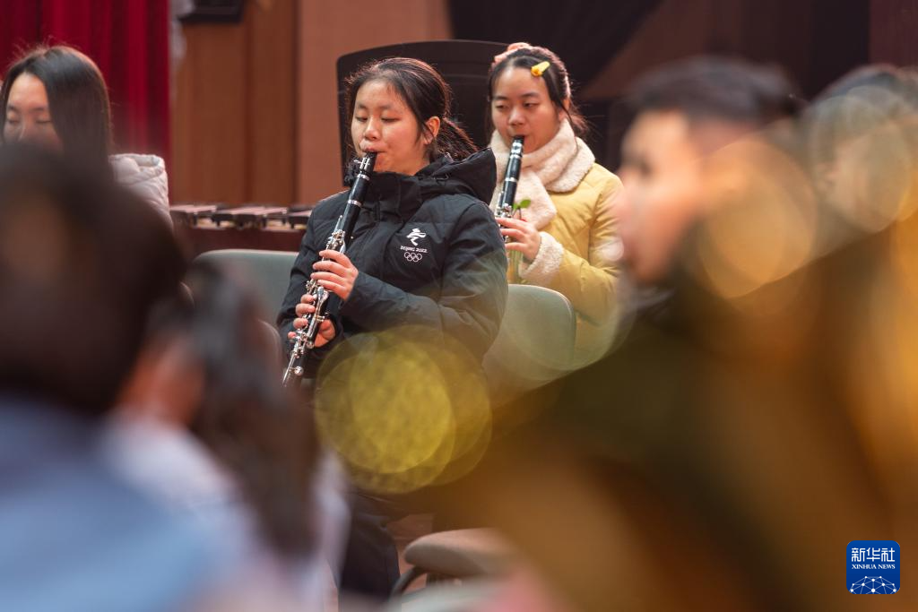 2023年12月28日,在重庆市特殊教育中心的扬帆音乐厅,扬帆管乐团成员在排练新年音乐会节目。