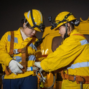 “00后”女孩何雪和母思琪是中国铁路成都局重庆供电段兴隆场电力工区的两名电力线路工。每个夜晚,她们和工友背负数公斤重的工具材料,从地面沿着近70度的爬梯攀上22米高的电塔和17米高的灯桥,对这里的5000余盏灯进行巡检维修,确保编组站场的照明安全。