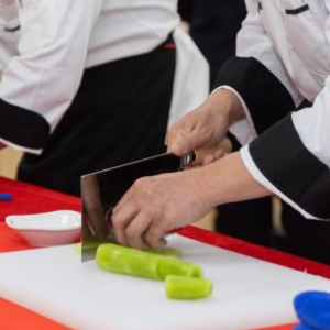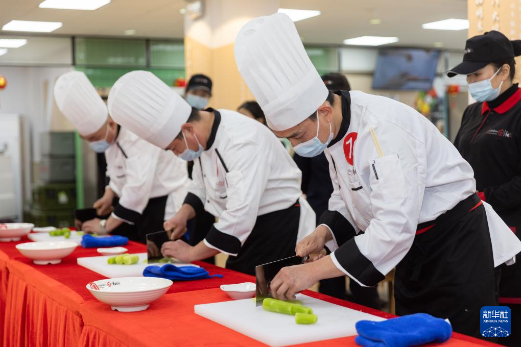 1月19日,参赛厨师比拼刀工。