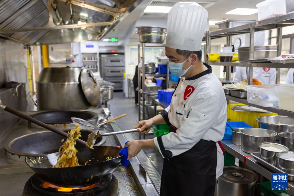 1月19日,参赛厨师制作干炒牛河。
