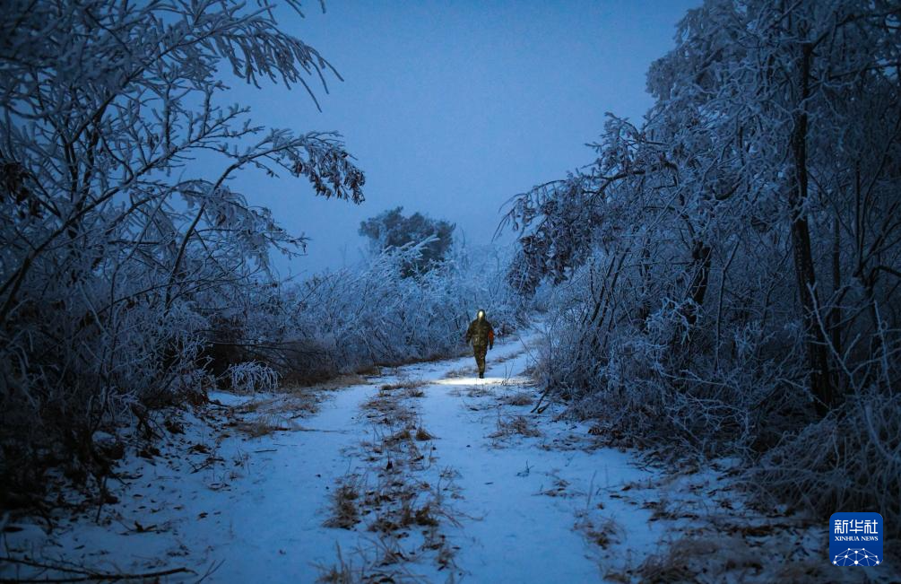 1月20日,在山东省潍坊市临朐县国有沂山林场,护林员蔡长春和妻子张庆丽清理被冰雪压折的树枝。