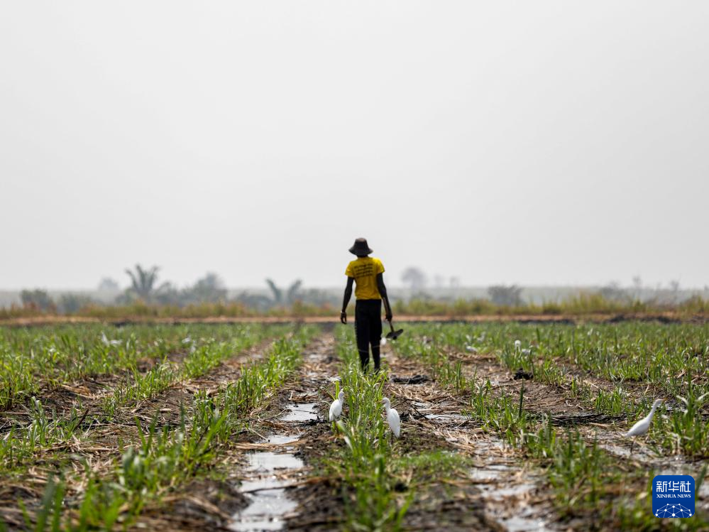 1月14日,在多哥阿尼耶,当地居民走在灌溉渠边甘蔗地里。