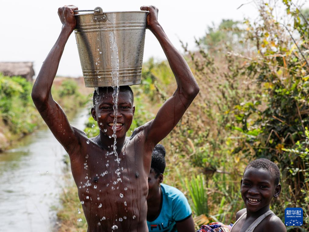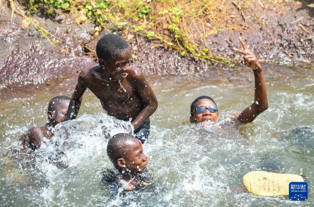 1月14日,在多哥阿尼耶,当地居民在灌溉渠中戏水消暑。