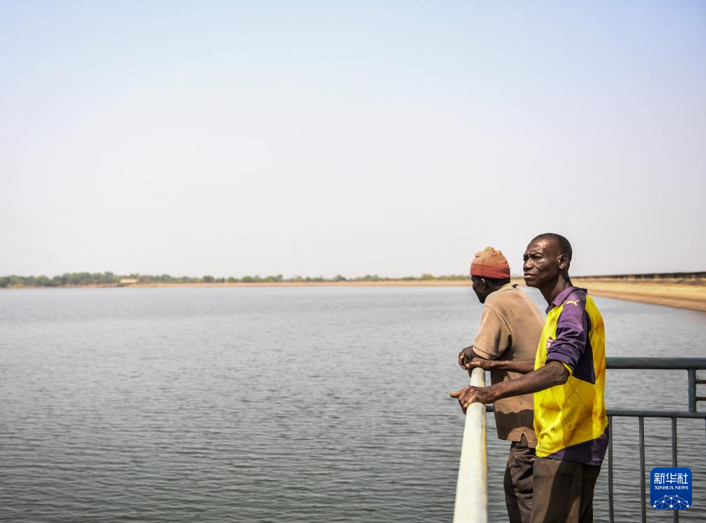 1月14日,在多哥阿尼耶,水库工作人员查看水库蓄水情况。