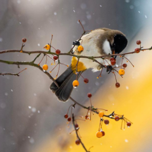1月22日,在贵州省毕节市百里杜鹃管理区鹏程街道,一只小鸟在觅食。