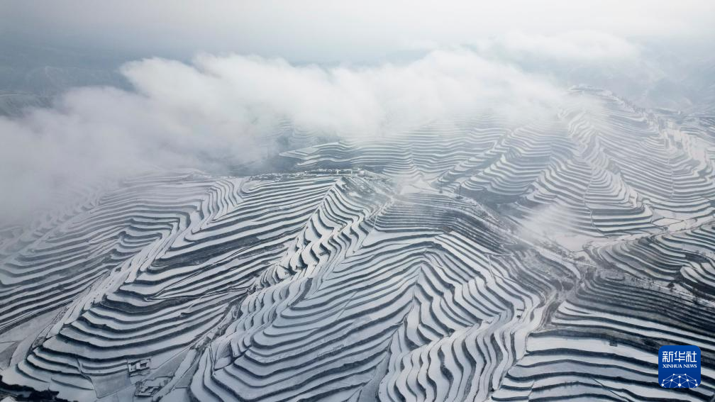 1月21日在甘肃省临夏州永靖县徐顶乡拍摄的雪景(无人机照片)。