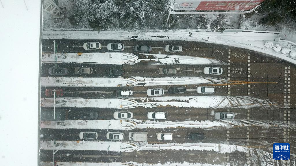 1月22日,在湖南省长沙市,车辆有序驶过长张高速长沙西收费站(无人机照片)。