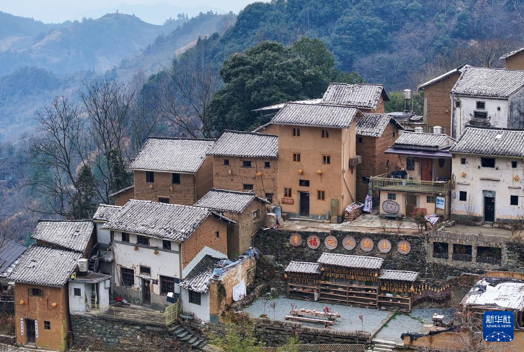 1月22日在安徽省黄山市歙县深渡镇阳产村拍摄的土楼雪景(无人机照片) 。