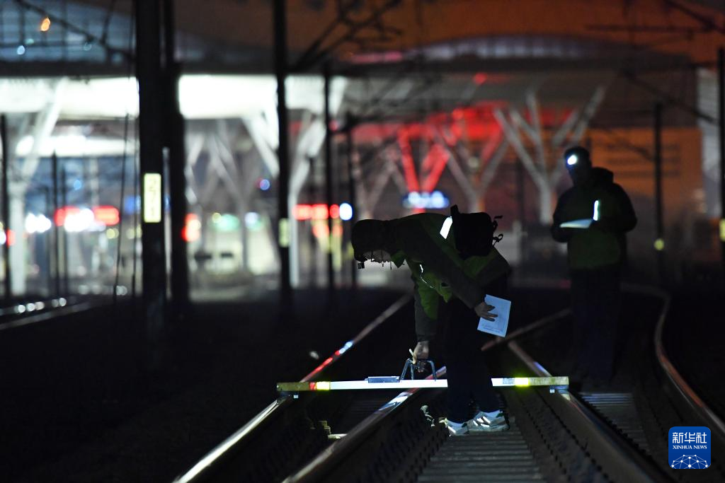 长沙南站是连接京广高铁与沪昆高铁的重要枢纽车站,长沙高铁工务段长沙南线路检查二工区主要负责长沙南站前后道岔、线路等设施设备的检查。春运期间旅客列车加开,“天窗”作业时间缩短,铁路线路工们在寒夜中完成各项检查,保障列车行驶安全。