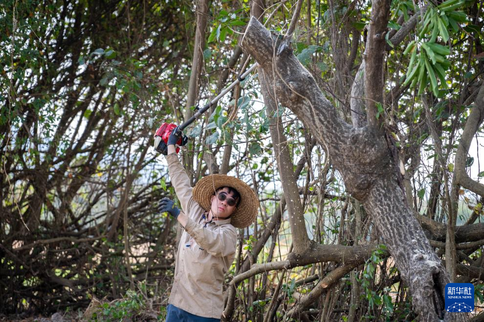 1月11日,工作人员在米埔自然保护区修剪树枝。