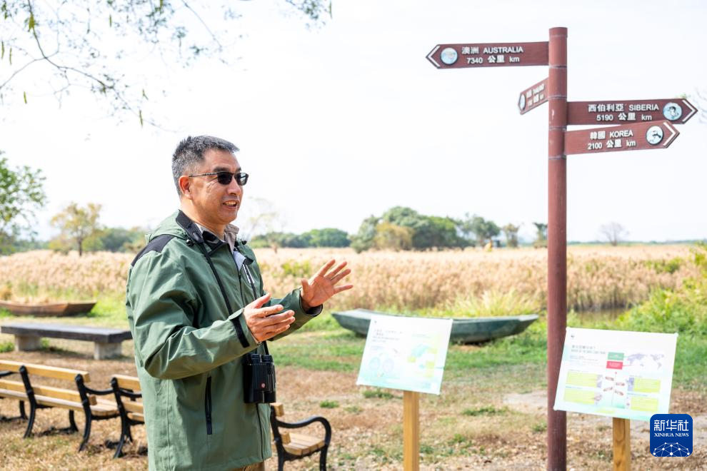 1月11日,世界自然基金会香港分会米埔保护区及迁飞路线保育项目总监文贤继在米埔自然保护区介绍候鸟迁徙路线。