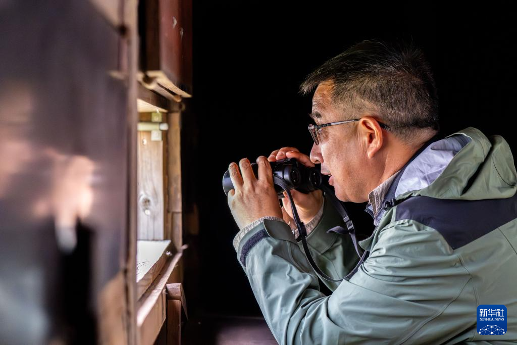 1月11日,世界自然基金会香港分会米埔保护区及迁飞路线保育项目总监文贤继在米埔自然保护区观鸟屋观察鸟类。