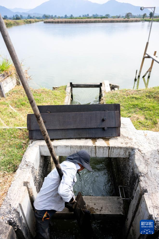 1月11日,工作人员在米埔自然保护区调节基围水位。