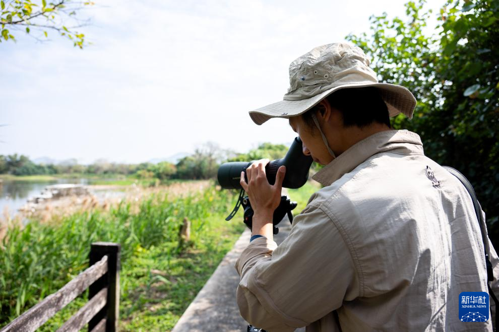 1月11日,工作人员在米埔自然保护区观察鸟类。