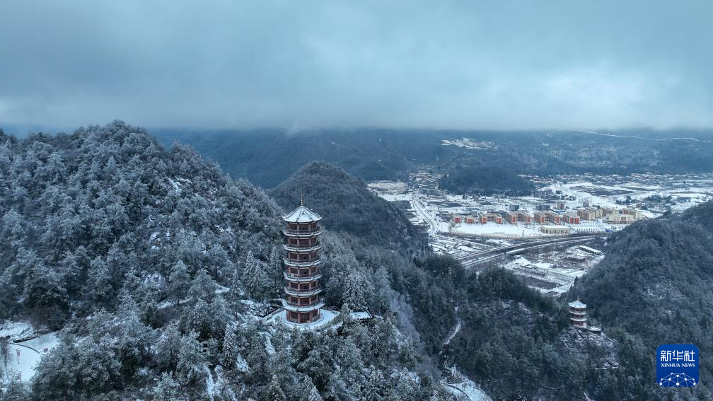 2月4日拍摄的重庆市酉阳土家族苗族自治县桃花源国家森林公园雪景(无人机照片)。