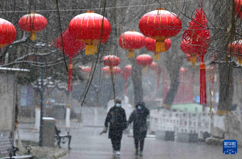 2月4日,市民在河北省石家庄市元南公园雪中行走。