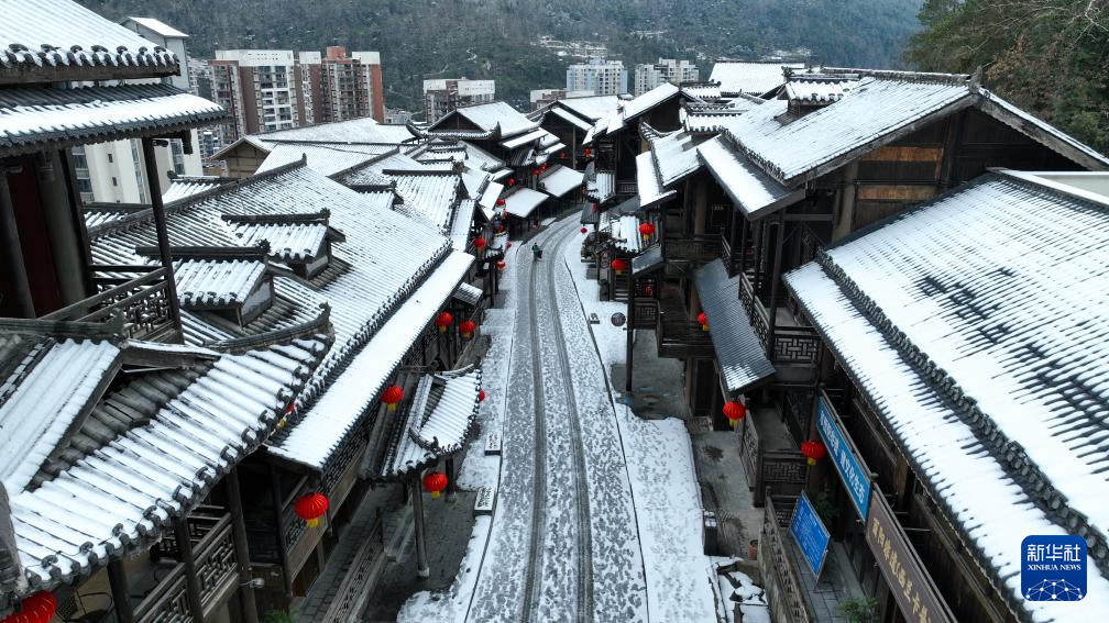 2月4日拍摄的重庆市酉阳土家族苗族自治县酉州古城雪景(无人机照片)。