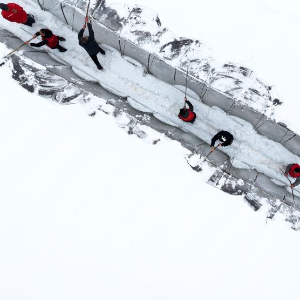 2月4日,在贵州玉盘高速施秉县境内的舞阳河大桥,公路养护人员驾驶工作车辆清理桥面覆冰(无人机照片)。