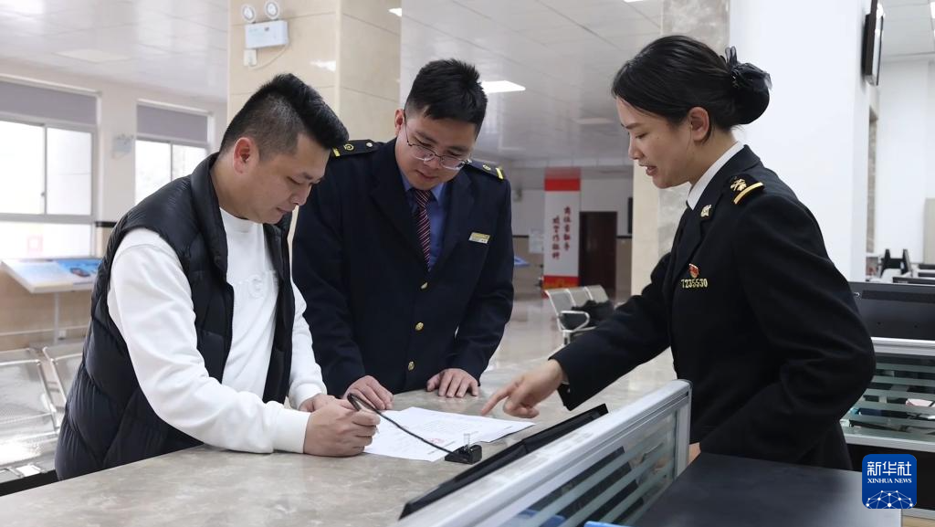 客商在南宁铁路物流中心办理跨境运输手续(2月2日摄)。