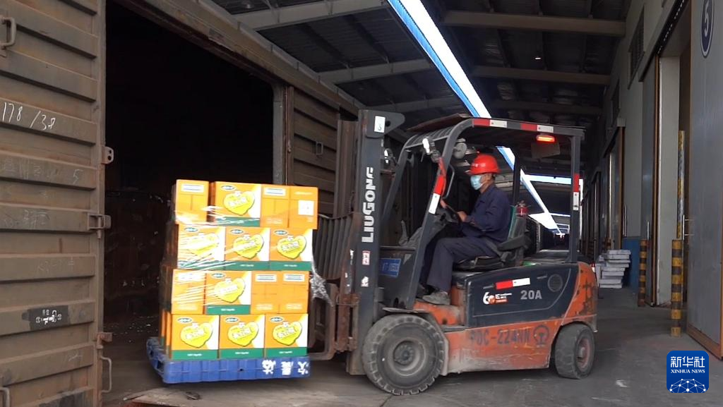 在南宁国际铁路港货场,作业人员将货物装运进中越班列(2月2日摄)。