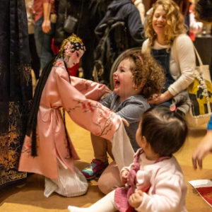 2月11日,孩子们在美国费城艺术博物馆举行的龙年迎新春活动上体验木偶戏。新华社发(周焕新摄)