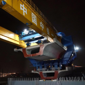 3月4日凌晨拍摄的沪苏湖铁路全线最后一榀箱梁架设施工现场。