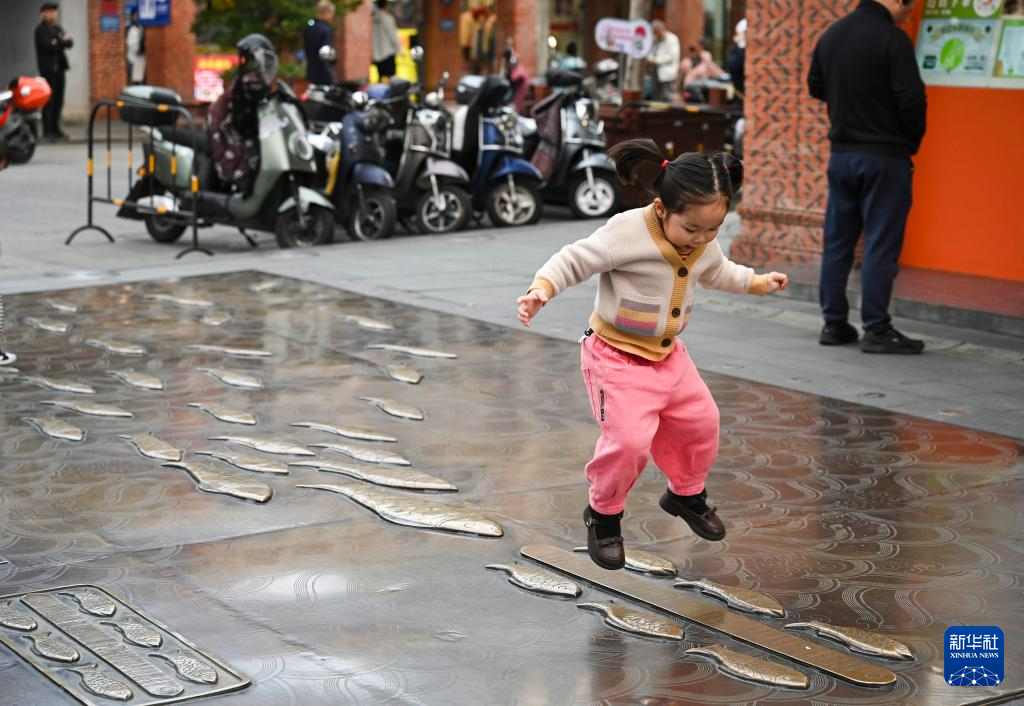 4月10日,在泉州中山路,一名小女孩在金鱼巷玩耍。
