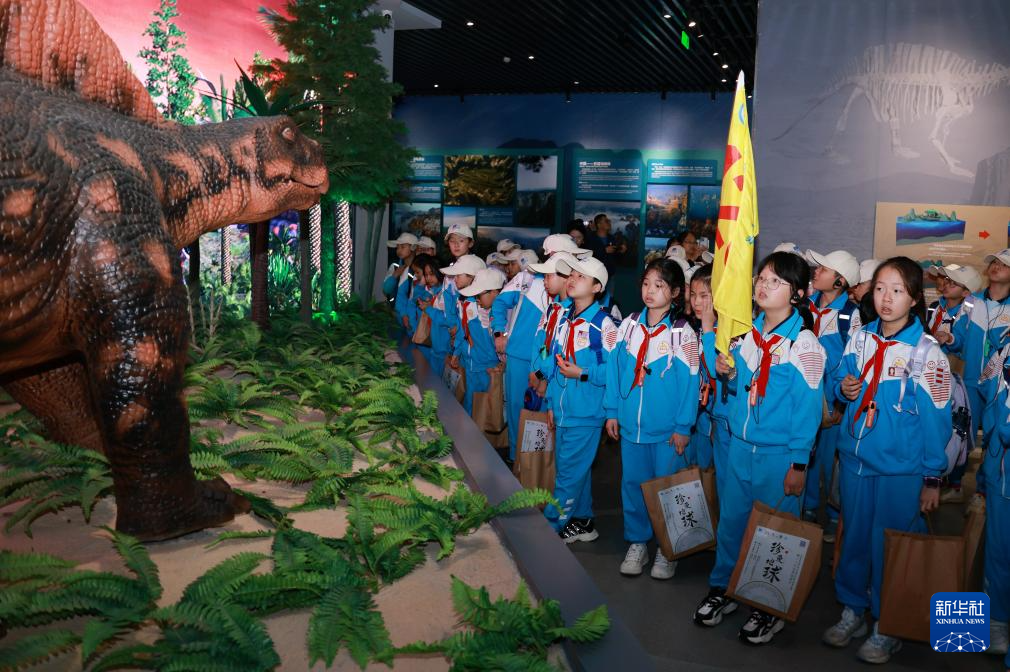4月22日,湖南张家界市武陵源区军地小学在张家界世界地质公园博物馆开展世界地球日科普教育活动。这是小学生在博物馆内学习了解古生物知识。