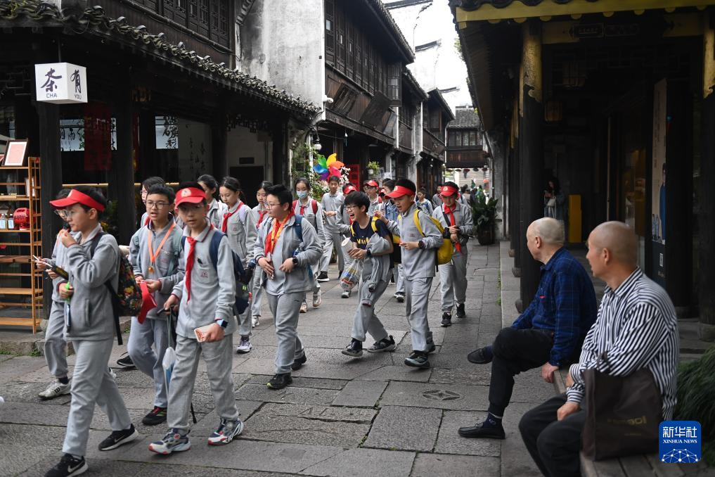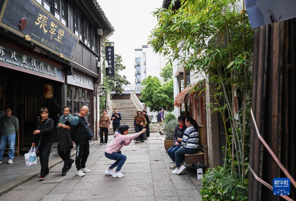 4月26日,游客在嘉兴市月河历史街区观光游玩。
