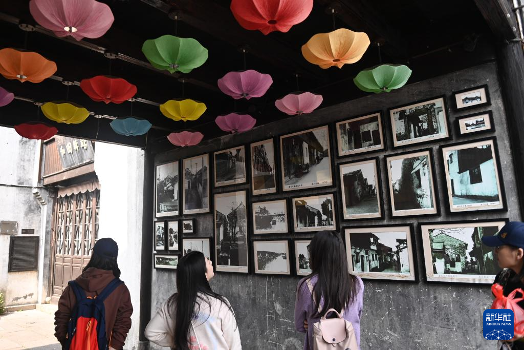 拼版照片:上图为1979年的嘉兴市月河历史街区坛弄(资料照片,庞艺影摄);下图为4月26日拍摄的游客在嘉兴市月河历史街区坛弄游玩(新华社记者江汉摄)。