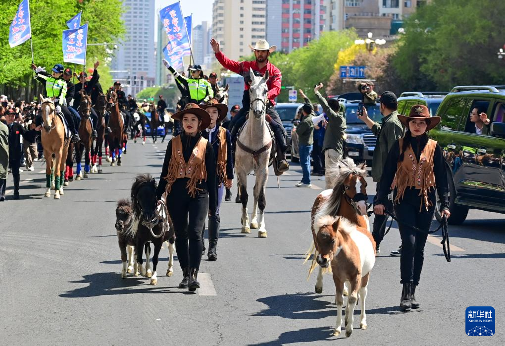 4月30日,一支庞大的巡游队伍亮相新疆乌鲁木齐市友好商圈。作为“五一”文化展演活动的一部分,乌鲁木齐市通过马队、驼队、花车等巡游的方式,展示城市的发展活力和独特魅力。