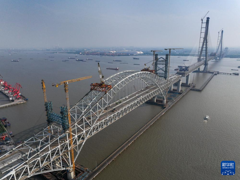 这是中铁宝桥集团有限公司参建的常泰长江大桥施工现场(5月10日摄)。